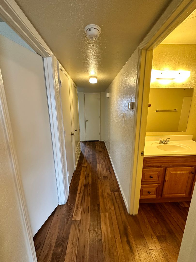 Welcome to your new home in Rio Rancho, NM! This upstairs apartment, aptly named "Move in Special 1/2 off 1st months rent! All Hard Floors!" offers a spacious layout with two bedrooms and a full bathroom. The apartment is adorned with beautiful hardwood floors throughout, adding a touch of elegance and easy maintenance. The living room features a cozy fireplace, perfect for those chilly evenings. The kitchen is equipped with a stove/oven and a refrigerator, ready for your culinary adventures. The apartment also boasts a walk-in closet, providing ample storage for your belongings. Additionally, there is outside storage available for your convenience. The unit also comes with washer and dryer hookups, making laundry days a breeze. Don't miss out on this fantastic opportunity to make this apartment your new home!