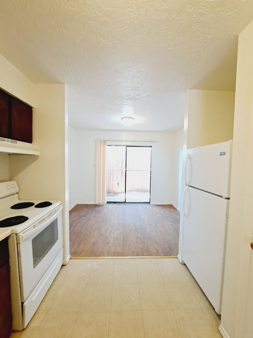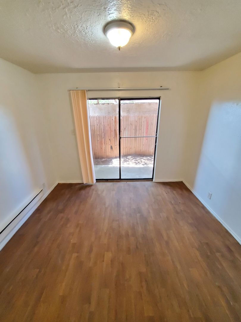Welcome to your new home in Albuquerque, NM! This 2-story townhouse offers a unique blend of comfort and convenience. With two spacious bedrooms and a full bathroom, this home is perfect for those who value space and privacy. The new carpeting adds a touch of elegance and warmth to the living spaces. The kitchen is equipped with an electric stove, perfect for preparing your favorite meals. The apartment is electric only, with the tenant responsible for the electric bill. One of the standout features of this townhouse is the upstairs balcony, a perfect spot to enjoy the New Mexico sunsets. Additionally, the small fenced-in backyard provides a private outdoor space for relaxation or entertaining. Off-street parking is available, adding to the convenience of this home. Plus, water, trash, and sewer services are included in the rent, providing additional savings. Experience the best of Albuquerque living in this 2-story townhouse!